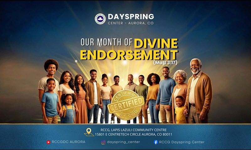 THE REDEEMED CHRISTIAN CHURCH OF GOD, DAYSPRING CENTERWelcome to RCCG Dayspring center Aurora Colorado. RCCG Dayspring center is a church whose goal is to make a difference in the lives of all races, ages, social and economic positions with the message of Hope found in the saving power of Jesus Christ.